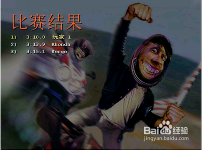 9、勝利。將每個摩托選手甩到后面時,基本上沒有什么障礙物了,順利跑到第一名。比賽結(jié)果,第一名!哈哈~~