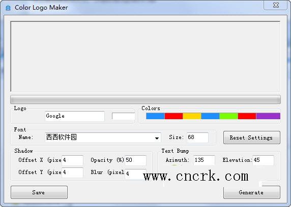 彩色Logo圖片生成器下載V1.0.2 綠色版是一套使用方便的 Logo 顏色配置軟件,只要預(yù)先選好要用的字體,輸入要使用的文字(中文也行)、大小、陰影、透明度等,接下來調(diào)整所生成的圖片大小,便可幫你將顏色配置上并生成預(yù)覽圖,完成后,可存成 BMP、JPG 或 PNG 的圖片格式。