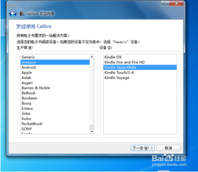 3、選擇你合適的設備,如果你是kindle的用戶那么,選擇Amazon---kindle,如果您買到的的是新款kindle也可以選擇kindlepaperwhite。