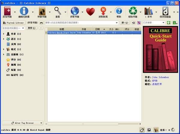 Calibre 猶如一個電子書的圖書館,它支持大多數格式的電子書文件,只要用鼠標將文件輕輕一拽,即可把電子書添加到 Calibre 中來。