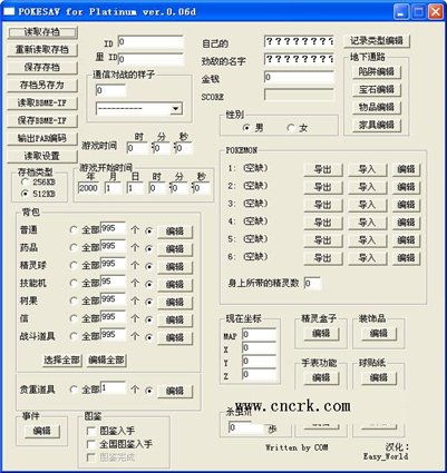 口袋妖怪白金修改器下載,針對(duì)模擬器游戲口袋怪獸白金版的的存檔修改。能夠修改自己和敵人的名字,修改物品,藥物,精靈,技能機(jī),樹(shù)果,信,戰(zhàn)斗道具,貴重道具等。