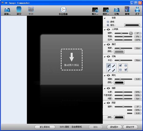 創(chuàng)建三維效果的圖像比如3D角度、三維彎曲、反射、微光、投影、彎道和縐褶等。支持BMP、JPG、GIF、PNG、TIFF和PSD圖像格式。