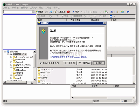 市場上最著名的FTP Voyager工具,具有10年歷史。FTP Voyager 是一個Windows下功能強(qiáng)大的FTP客戶端工具, FTP Voyager 的界面與Windows資源管理器相似,所以無論是新手還是老手都可以方便的進(jìn)行操作。它使用直觀的拖拉界面, FTP Voyager 支持通過一個簡單的點(diǎn)擊就可以更新站點(diǎn),在FTP服務(wù)器之間直接傳輸文件,斷點(diǎn)續(xù)傳,以及在執(zhí)行其它FTP任務(wù)時可以進(jìn)行文件搜索。它所提供的FTP站點(diǎn)管理功能提供了多項(xiàng)現(xiàn)在最流行的FTP站點(diǎn),你也可以方便的將你自己的FTP站點(diǎn)方便的添加。你也可以從其它的FTP客戶端工具中導(dǎo)入你的FTP地址,其它功能包括,F(xiàn)TP定時,你可以定義所有的任務(wù),包括上傳,下載,同步更新和刪除文件或文件夾。