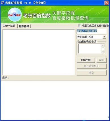 老張百度指數(shù)查詢 (關鍵詞排名查詢/關鍵詞挖掘工具)是相關詞挖掘,百度指數(shù)批量查詢的免費軟件。