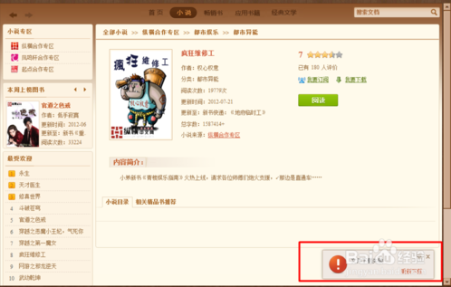 由于書庫維護(hù),暢銷書暫時(shí)看不到了,我們切換到小說的界面