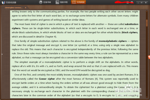 百度閱讀器的閱讀效果如圖,可以自己設(shè)置的