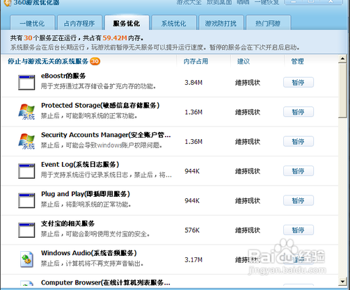 關(guān)于系統(tǒng)服務(wù),我們不要隨便亂動(dòng),不過有360大神助陣,我們新手也可以關(guān)閉一些。