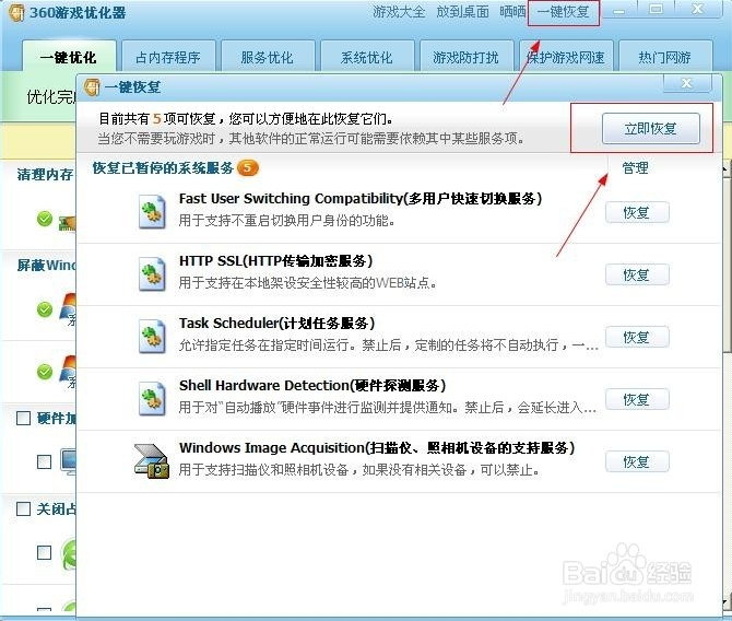 當(dāng)我們結(jié)束游戲,我們可以選擇恢復(fù)優(yōu)化,來回到我們開始玩以前電腦的狀態(tài)。