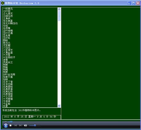 植物標本館 1. 美化界面,色調(diào)更柔和,不傷眼。 2. 增加背景音樂播放功能。
