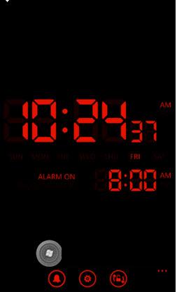 3.點(diǎn)擊“設(shè)置”更改時鐘格式和顏色。默認(rèn)鬧鐘,屏幕關(guān)閉和鎖定。如果你還想要你的屏幕鎖(根據(jù)您的手機(jī)屏幕超時設(shè)置),你可以恢復(fù)對程序的設(shè)置。只要程序還在運(yùn)行下的鎖屏,你的鬧鐘仍然可以工作,即使有屏幕鎖定和關(guān)閉。