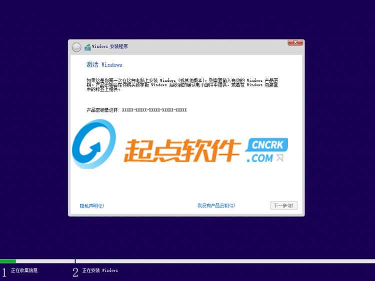 4、根據(jù)提示點(diǎn)擊>下一步>現(xiàn)在安裝,買Windows10密鑰的輸入然后下一步,沒有購買的點(diǎn)擊“我沒有產(chǎn)品密鑰”。