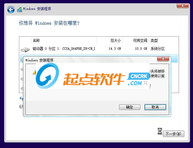 8、選擇哪一個(gè)分區(qū)做系統(tǒng)盤(默認(rèn)C盤)。