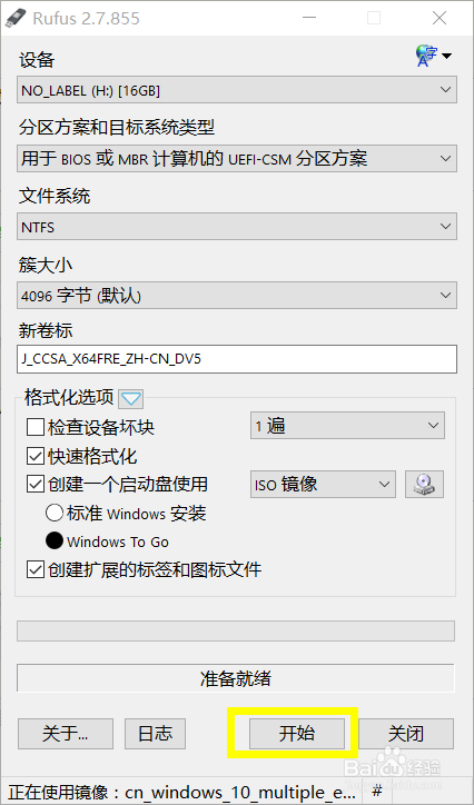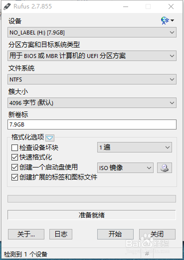 3、create a bootable disk using:后面選擇“iso image”,在點(diǎn)擊后面的圖標(biāo)選擇iso鏡像文件。
