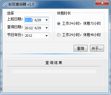 輪班查詢器還可同時查詢從2012年到2018年除夕和中秋是否上班;并可對72小時和48小時輪班的工作人員進行輪班查詢。
