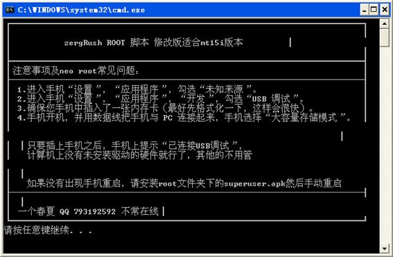 說明: 將第ROOT目錄放在C盤根目錄下。連上豌豆夾一定要用USB線連機。 雙擊 root.bat 。根據(jù)提示操作即可成功