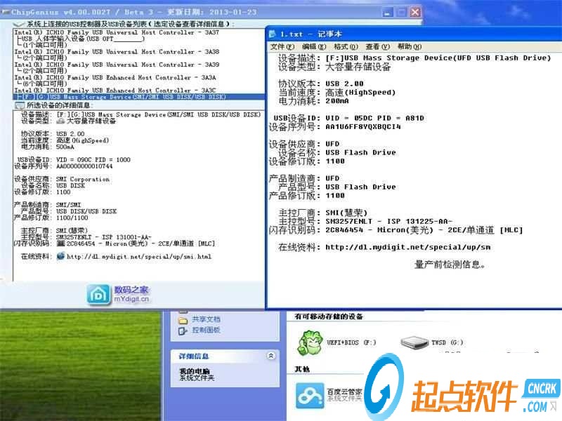 量產(chǎn)前后的芯片精靈檢測對比截圖,量產(chǎn)的iso是大白菜的uefi+bios鏡像。