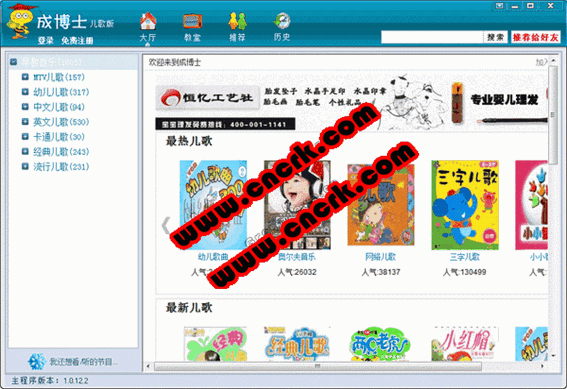 成博士經典兒歌大全(兒歌大全視頻) V1.0.12.2 免費版 成博士經典兒歌大全(兒歌大全視頻)(2012版),收集了大量寶寶喜歡的mtv,中文兒歌,英文兒歌,卡通經典歌曲,成博士經典兒歌大全(兒歌大全視頻)資源豐富。