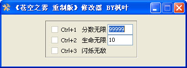 蒼空之霧修改器功能: ctrl+1 分數無限 ctrl+2 生命無限無敵 ctrl+3 閃爍無敵狀態(tài)