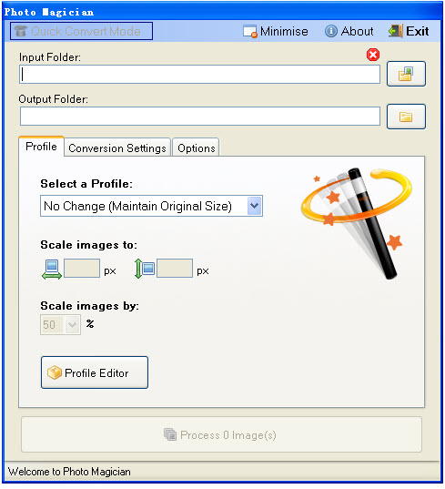 照片魔術師是一個小而易于使用的圖片轉換器程序,允許您快速的規(guī)模和轉換圖像。