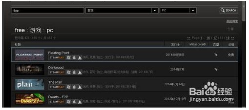 6、進(jìn)入搜索游戲,搜索free獲得免費(fèi)游戲列表,當(dāng)然你也可以搜索其他指定游戲