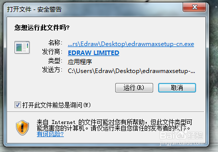 Windows7系統(tǒng)會彈出安全警告,單擊運行按鈕