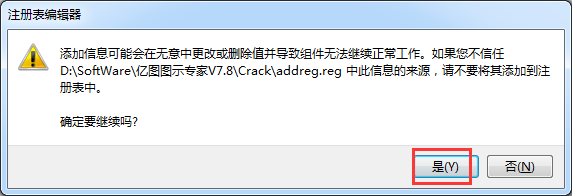 步驟一、 雙擊打開addreg.reg文件,導(dǎo)入注冊信息。