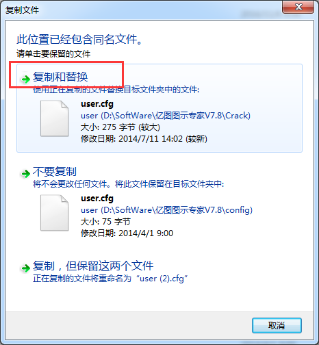 將這文件夾下的user.cfg復(fù)制替換crack文件夾下