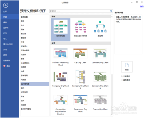 2. 在開始頁面,點擊組織結(jié)構(gòu)圖模板 分類列表。