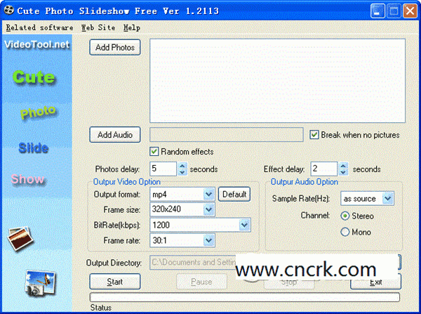 Cute Photo Slideshow Free能將各種格式的照片或者圖片制作成視頻,可以將做好的視頻導(dǎo)出成為的格式:SWF、FLV、WMV、MOV 或 MP4。還可以調(diào)整比特率和視頻框架,讓你可以制作不同的視頻大小,從128X96到1280X960都可調(diào)整,方便你在不同的設(shè)備上使用不同的解析度。
