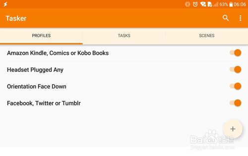 首先一進(jìn)入「Tasker」,會(huì)看到有一個(gè)「配置文件」的頁(yè)面,這里其實(shí)就是讓你「建立(要觸發(fā)自動(dòng)反應(yīng)的)情境條件」。可以設(shè)定手機(jī)感應(yīng)器、特殊時(shí)間點(diǎn)、插上特殊裝置、電池狀態(tài)等等各種條件。