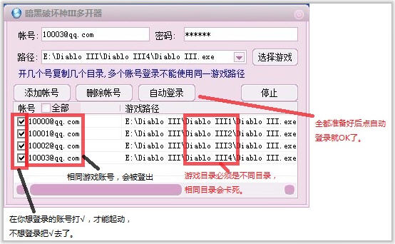 暗黑破壞神3多開(kāi)器是一款暴雪網(wǎng)游暗黑破壞神3的躲開(kāi)工具。暗黑破壞神3多開(kāi)器完全免費(fèi),暗黑破壞神3多開(kāi)器只提供多開(kāi)功能,不是外掛程序,100%不會(huì)被封號(hào)。暗黑破壞神3多開(kāi)器下載包內(nèi)含多開(kāi)教程。