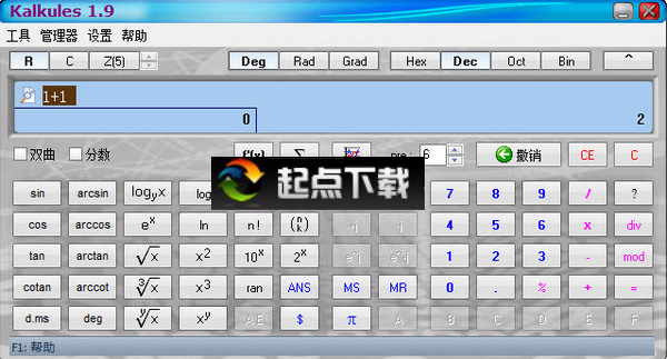 您的位置:起點軟件下載電腦軟件系統(tǒng)軟件Kalkules 科學計算器 1.9.6.25 綠色中文版