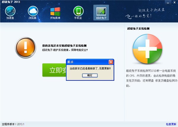 超級兔子是一款擁有超過10年歷史的電腦功能輔助軟件,超級兔子可助用戶輕松辨別硬件的運作狀態(tài)、安裝硬件的驅(qū)動程序、維護系統(tǒng)安全、安裝系統(tǒng)補丁及軟件升級、優(yōu)化系 統(tǒng)功能、清除系統(tǒng)的多余文件、提升電腦速度、保護IE安全、監(jiān)測危險程序、屏蔽廣告彈窗、清理流氓軟件,真正為用戶打造屬于自己的貼身安全系統(tǒng)。