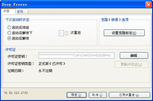 啟動后解凍:意思就是解凍凍結(jié)狀態(tài)即沒有保護(hù)。如果需要再次凍結(jié)保護(hù)的話,可重啟后再打開軟件選擇“啟動后凍結(jié)”即可。