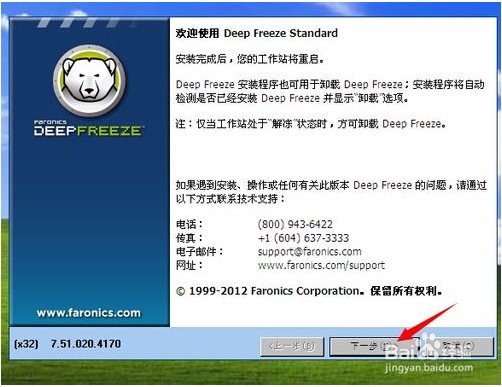1、找到剛才下載的冰點還原精靈安裝程序打開進(jìn)行安裝,出現(xiàn)安裝界面,按圖示選擇“下一步”