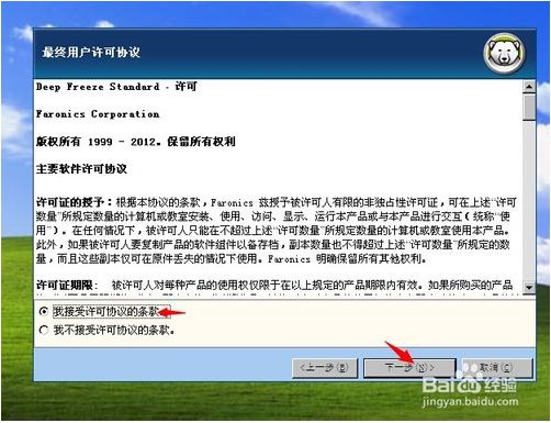 2、下一步后出現(xiàn)新的界面,此項是軟件的許可協(xié)議,按圖示接受協(xié)議,并選擇“下一步”