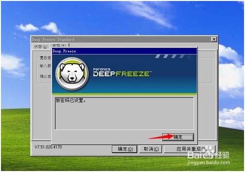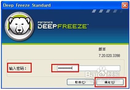 2、這是會彈出冰點還原的設(shè)置頁面,輸入密碼,沒有設(shè)置密碼的話直接按“確定”即可。