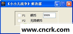小小大戰(zhàn)爭修改器功能:F1 銅幣數(shù)量修改為指定的數(shù)值F2 無限銅幣