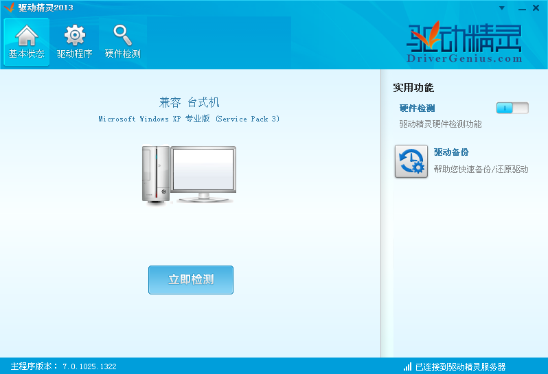 驅(qū)動精靈2013為用戶提供驅(qū)動備份、恢復(fù)、安裝、刪除、在線更新等實(shí)用功能,您可以把驅(qū)動的下載、安裝、升級、備份全部交給驅(qū)動精靈來搞定!支持包含Windows 2000、XP、Vista、7、8在內(nèi)的所有微軟32/64位操作系統(tǒng)。另外除了驅(qū)動備份恢復(fù)功能外,驅(qū)動精靈2013還提供了 Outlook 地址簿、郵件和 IE 收藏夾的備份與恢復(fù)。