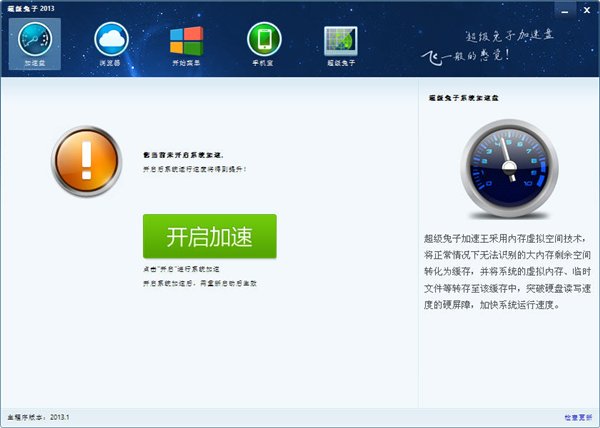 超級(jí)兔子加速器使用了內(nèi)存虛擬空間技術(shù),能夠 將正常情況下無法識(shí)別的內(nèi)存空間和系統(tǒng)使用不到的內(nèi)存剩余空間轉(zhuǎn)化 為虛擬盤。并將系統(tǒng)的分頁文件、臨時(shí)文件、IE緩存等轉(zhuǎn)存至內(nèi)存虛擬 盤中。突破硬盤讀寫速度的硬屏障,加快系統(tǒng)運(yùn)行速度。