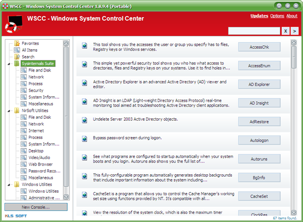 一款用來(lái)查看,執(zhí)行和管理Windows Sysinternals Suite的免費(fèi)軟件。WSCC只是個(gè)前端外殼程序,所以你可能需要單獨(dú)下載Windows Sysinternals Suite這個(gè)軟件包。但是同時(shí),Windows Sysinternals Control Center也支持微軟那個(gè)Sysinternals Live在線即用即下的服務(wù),所以你即使不下那個(gè)包,網(wǎng)速還可以的話,也能在線用的。【軟件特點(diǎn)】