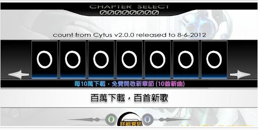 自V2.0.0起,雷亞團(tuán)隊(duì)推出了大膽而創(chuàng)新的一個(gè)計(jì)劃 : 每累計(jì)十萬(wàn)套的付費(fèi)下載,Cytus就會(huì)開(kāi)啟下一個(gè)故事章節(jié),完整的Cytus將擁有十個(gè)章節(jié),共計(jì)可免費(fèi)更新一百首的新曲!