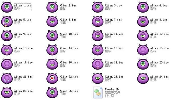 獨眼外星人圖標 (Purple Monsters) ico免費下載 獨眼外星人圖標紫色皮膚的外星人,只有一只眼睛,很有趣。獨眼外星人圖標壓縮包里包含了ICO, PNG, GIF和ICNS等四種圖標格式,方便您選擇合適的圖標格式。