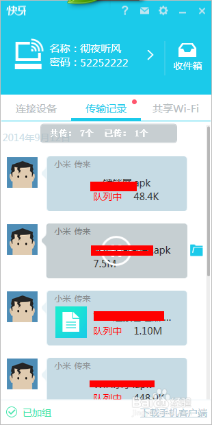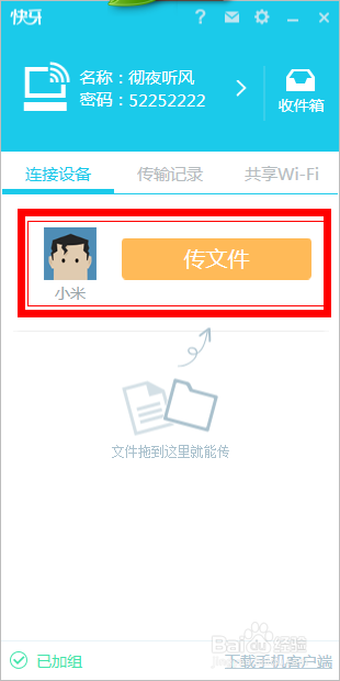 現(xiàn)在在手機(jī)中點(diǎn)擊“連接電腦”按鈕,將會(huì)搜索到電腦中的快牙的,然后點(diǎn)擊加入吧。