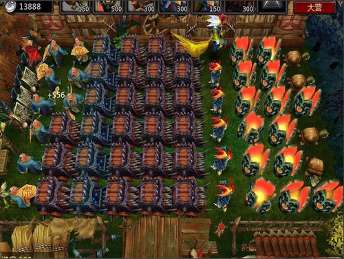 出3排商人,在有錢多的時(shí)候記得不弓箭手,雖然有可能掛掉幾個弓箭手,但是你的輸出還是保證了。在教一個覺著,如果頂不住,拿農(nóng)民上,農(nóng)民快要掛的時(shí)候,趕緊補(bǔ)個商人上去,這樣血又是滿的。