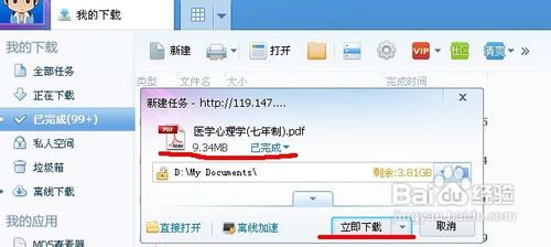 彈出新建迅雷下載任務(wù)框后,如下圖所示,我們單擊“立即下載”建立迅雷下載任務(wù)