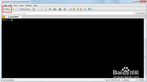 2、Xshell4打開(kāi)后如下圖所示,會(huì)出現(xiàn)一個(gè)界面框,這個(gè)界面框類似于DOS的界面,需要操控遠(yuǎn)程的主機(jī),都是通過(guò)這個(gè)界面進(jìn)行操作。在這個(gè)界面左上角的位置有一個(gè)【New】意為新建,點(diǎn)擊這個(gè)New。
