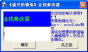 盛開的雛菊金錢修改器 免費下載 盛開的雛菊是一款模擬經(jīng)營類游戲,玩家將建設(shè)自己的花園,從而帶來經(jīng)濟(jì)效益做更大的投資建設(shè)。這是一款可以幫助你修改金錢的輔助軟件。只需你想要的金幣數(shù)量輸入編輯框中,然后點擊確定即可完成修改。