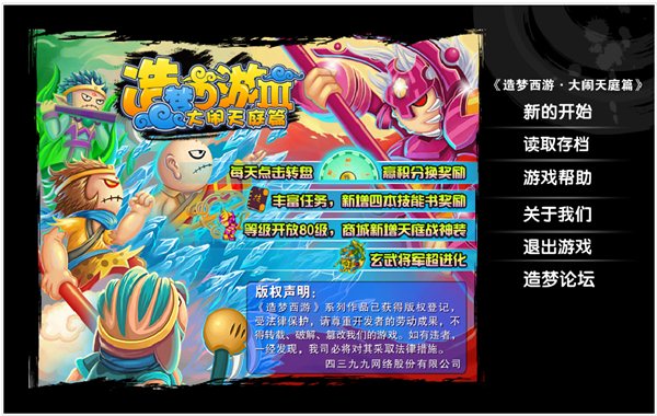 4399造夢(mèng)西游3無(wú)敵版·大鬧天庭篇是造夢(mèng)西游系列的第三個(gè)版本,4399造夢(mèng)西游3無(wú)敵版·大鬧天庭篇除了延續(xù)造夢(mèng)1、2玩家喜愛(ài)的Q版卡通畫(huà)面及形象外,更新增了天馬行空的劇情任務(wù)、酣暢淋漓的寵物戰(zhàn)斗模式、顛覆橫版游戲的線(xiàn)上PK、同屏聊天等。大鬧天庭解救玉皇大帝,穿梭時(shí)空捕抓青龍靈寵。腳踩七彩筋斗云,棍掃十萬(wàn)天兵將。勇闖九九八十一關(guān),凌霄寶殿、兜率宮、玲瓏塔、海底龍宮、截教天境 ,西游經(jīng)典場(chǎng)景再現(xiàn)!4399造夢(mèng)西游3大鬧天庭篇,一段驚天的旅程開(kāi)啟了。