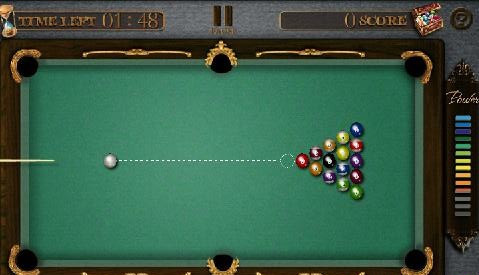和電腦AI對戰(zhàn),有標(biāo)準(zhǔn)的8球和9球規(guī)則。觸摸屏幕來調(diào)整方向,拖拽右邊的力度條,松開後擊球。自由球模式,按住任意位置移動母球,再次點擊母球確認(rèn)地點。